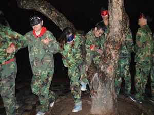 項目說明: 看不見戰場的司令官指揮不能說話的指揮官,讓盲人士兵在戰場中尋找水彈擊中敵方的士兵。 項目收益: 1、發送信息要完整、及時、準確; 2、通過活動,讓大家能明白工作溝通中,信息的發送、接受和確認反饋的重要性; 3、向上溝通,向下溝通和平行溝通的注意點。